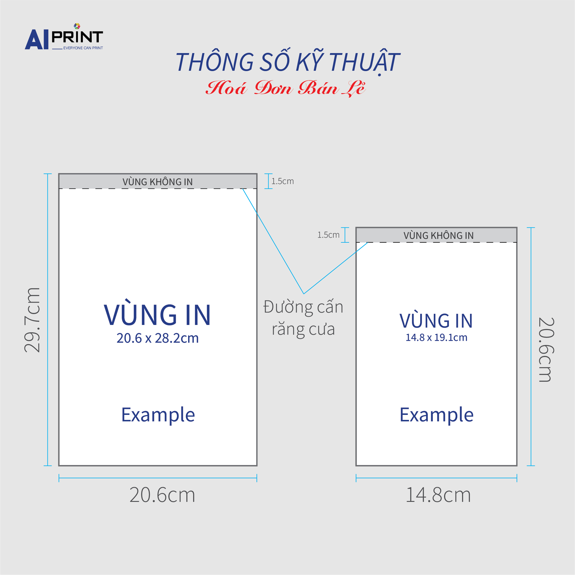 In hoá đơn, in biểu mẫu tại AIPRINT có các thông số kỹ thuật cơ bản gồm: