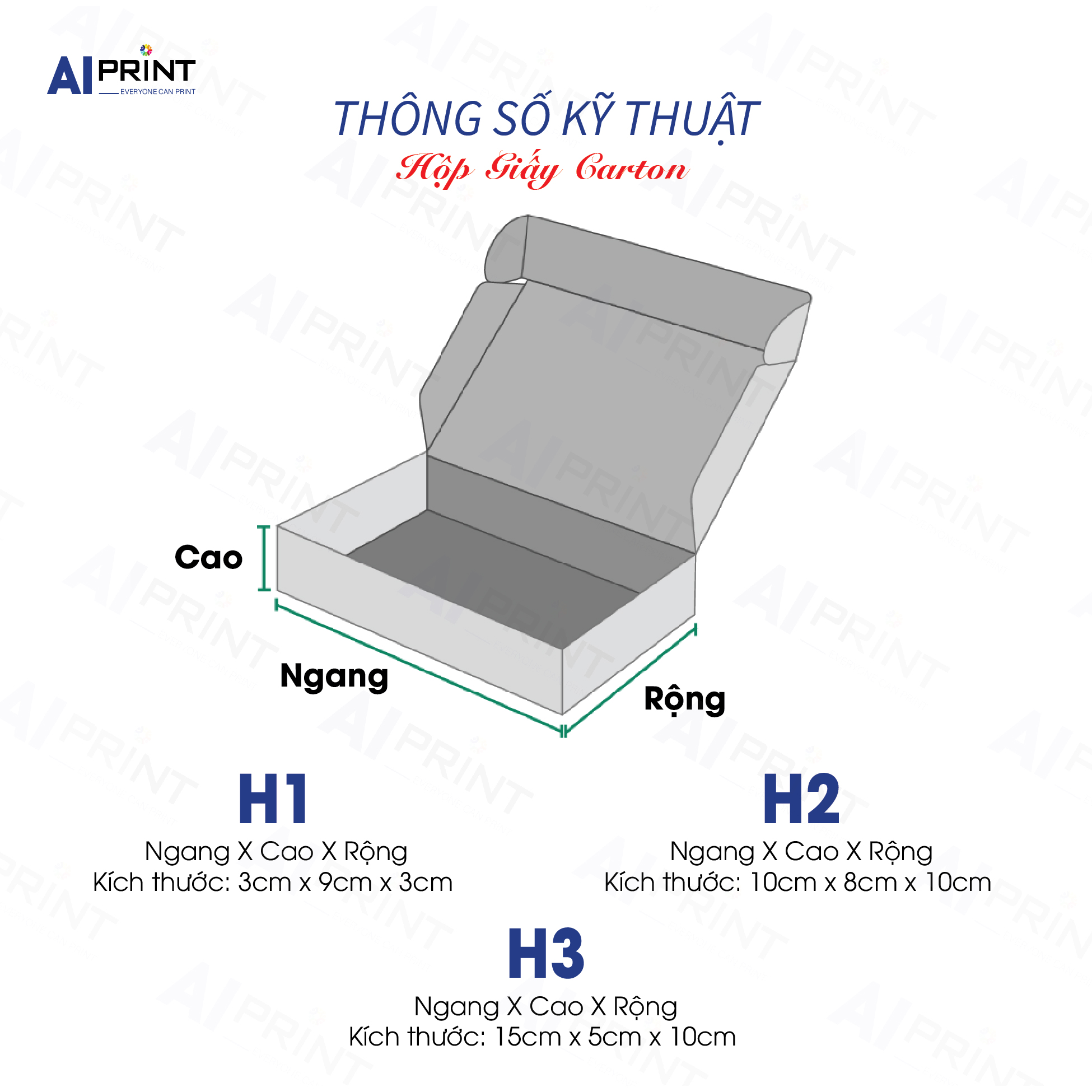 Hộp giấy thông dụng tại TGIA có 3 kích thước: