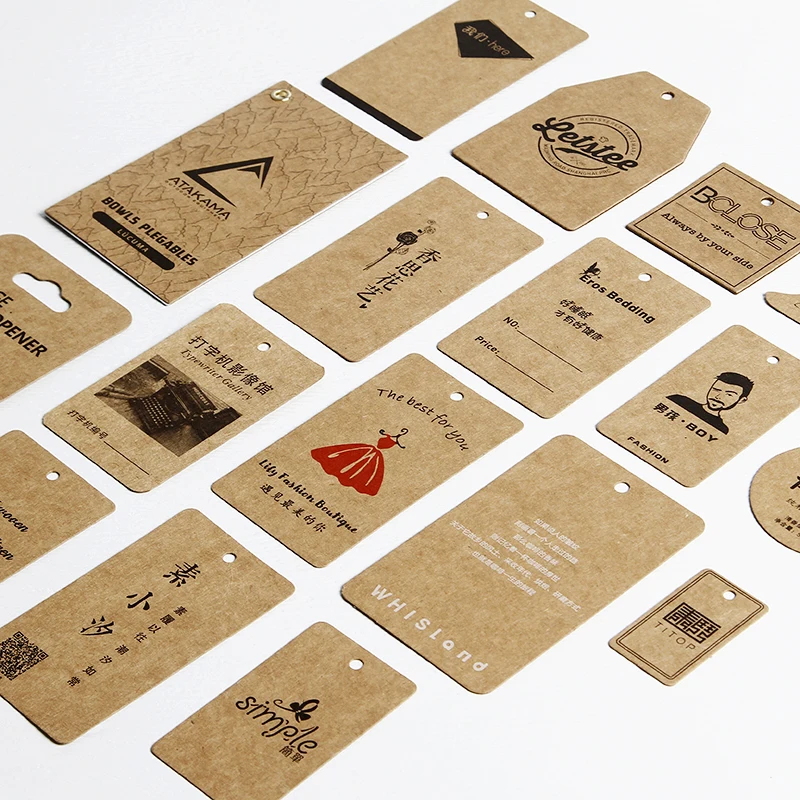 Tag sản phẩm thường được in trên 3 chất liệu giấy chính: C300, Fort và Kraft với nhiều hình dáng khác nhau như: Tag sản phẩm hình chữ nhật, hình tròn, hình oval, hình vuông, Tag sản phẩm bo góc, Tag sản phẩm chặt góc,…