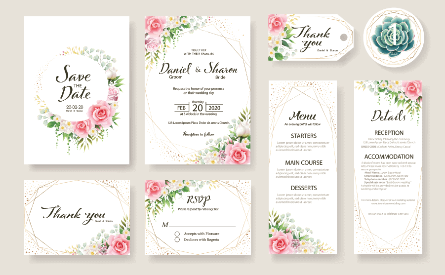 Thiệp cưới luôn là bước đầu tiên quan trọng được thiết kế dựa trên phong cách chung chủ đạo cùa đám cưới. Bạn không thể thiết kế một tấm thiệp nhiều chi tiết mang phong cách hoàng gia để mời khách đến tham dự trong một không gian tiệc cưới được trang trí theo lối đơn giản, mộc mạc (hay còn gọi là “rustic”). Hoặc bạn chọn phong cách chung cho tiệc cưới theo kiểu nhẹ nhàng của màu hồng mà lại gửi đến khách mời thiệp cưới màu đen trắng của phong cách lịch lãm…Ý nghĩa của thiệp cưới nằm ở chỗ đó, cô dâu và chú rể phải có sự đầu tư thiệp cưới sao cho hòa hợp và thống nhất với phong cách cưới chủ đạo của cả buổi tiệc.